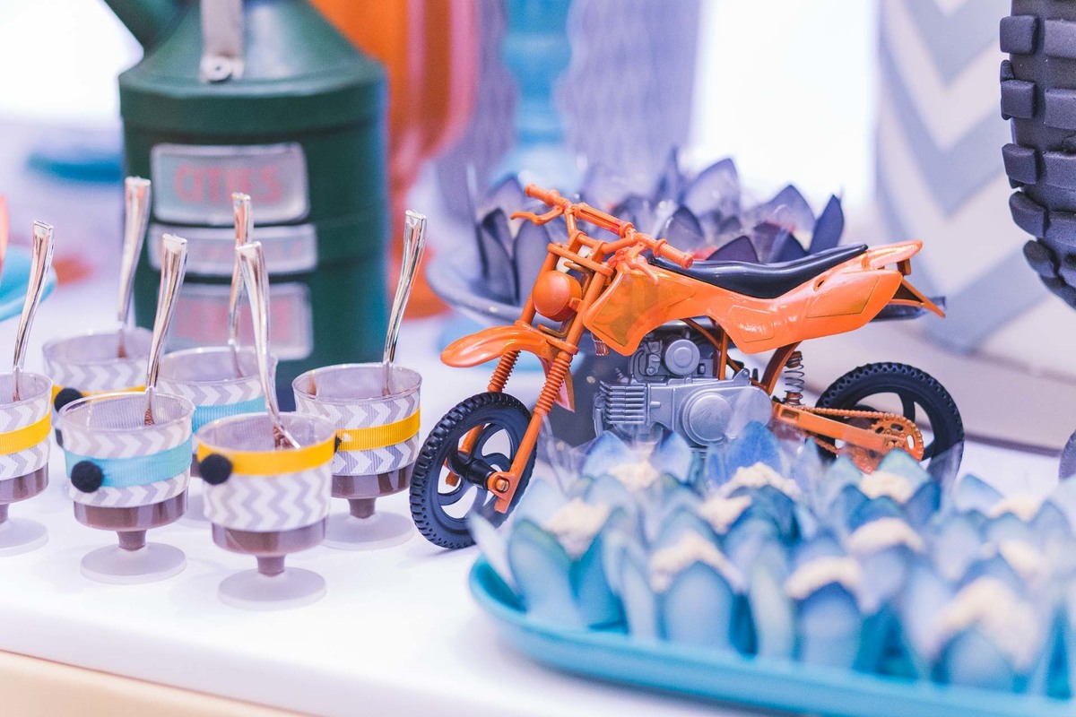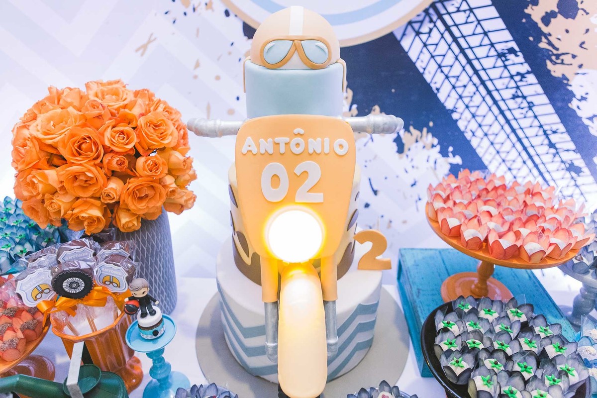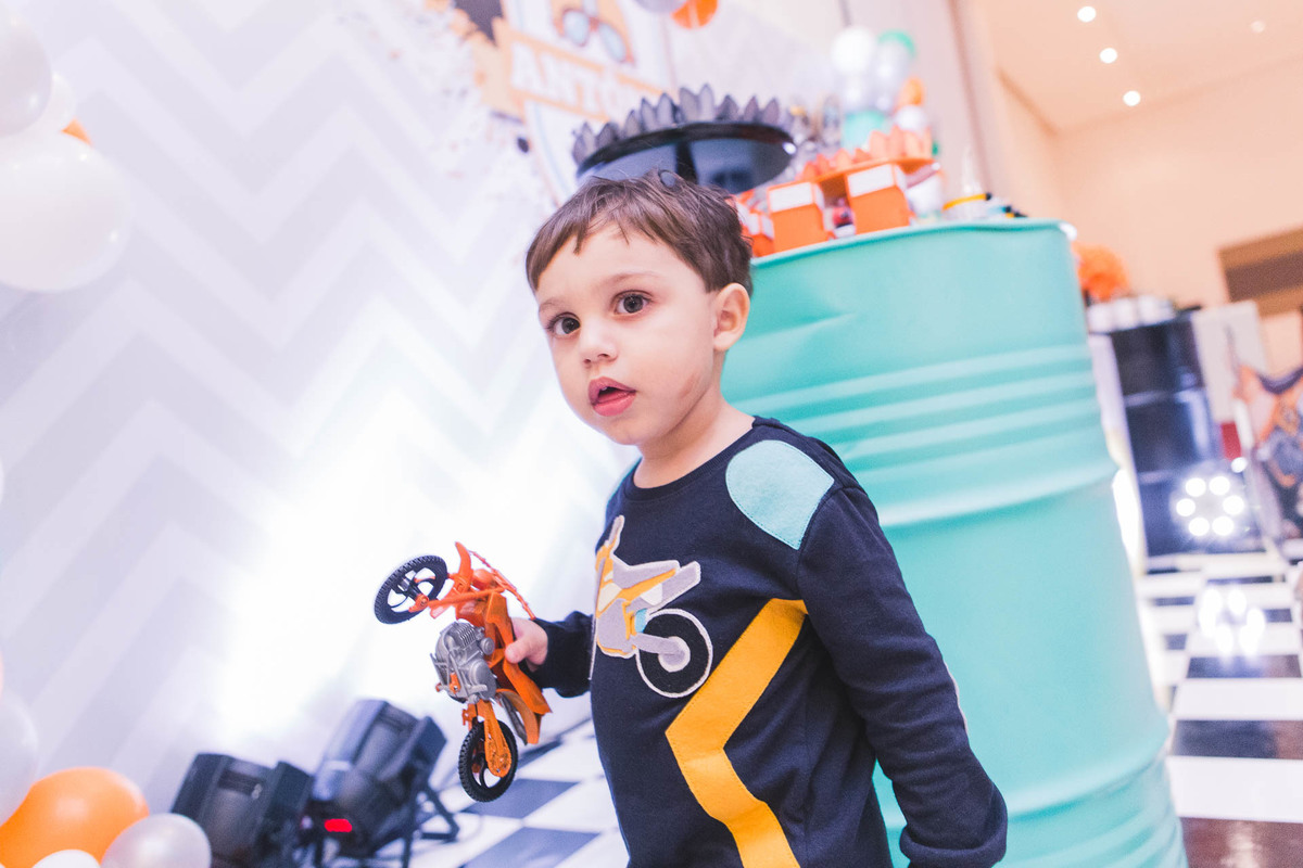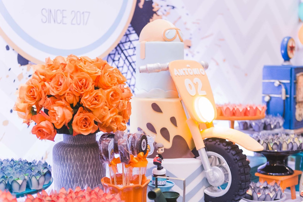 Antônio, chamado carinhosamente de Nino, não pode ouvir o barulho de uma moto que seus olhos brilham... a mamãe Dani então embarcou no sonho do filho e caprichou! Toda a decoração aniversário foi com o tema motocross. Motos, trilhas, pneus, combustível... Até roupa de motoqueiro Nino teve direito. Ele amou cada detalhe, claro! E se divertiu muito!