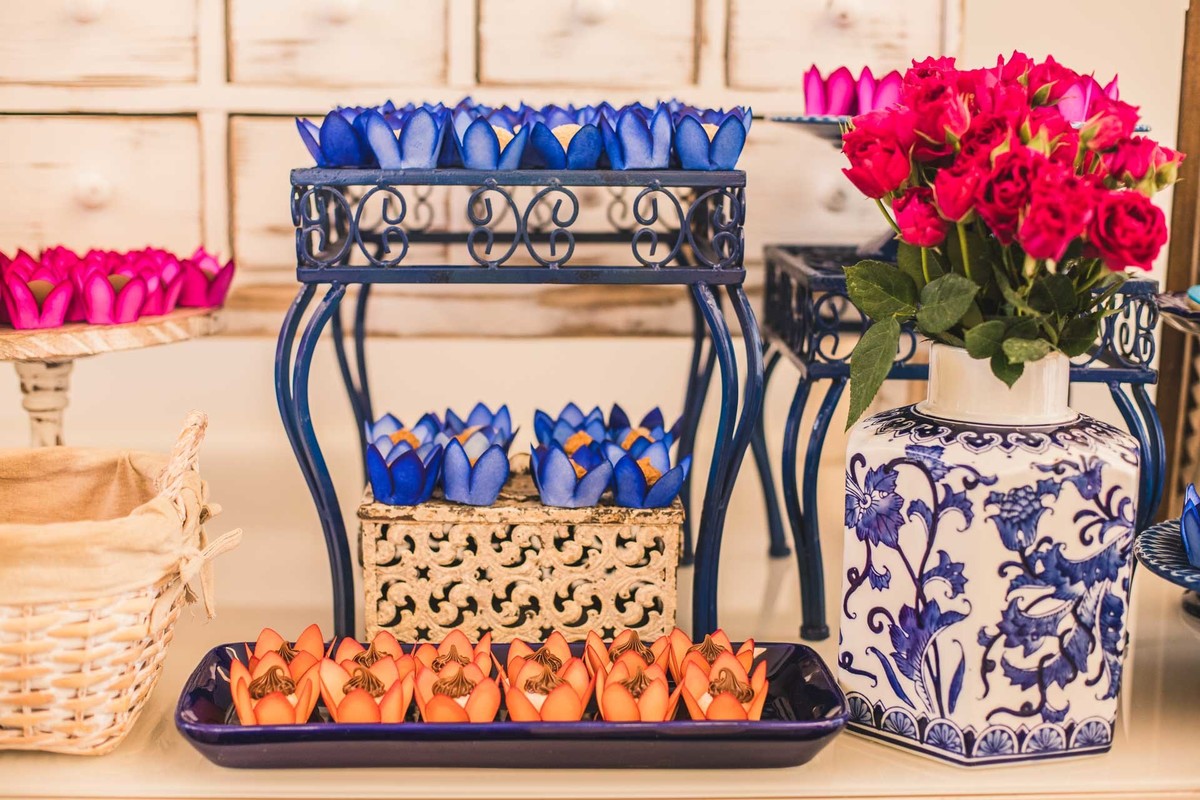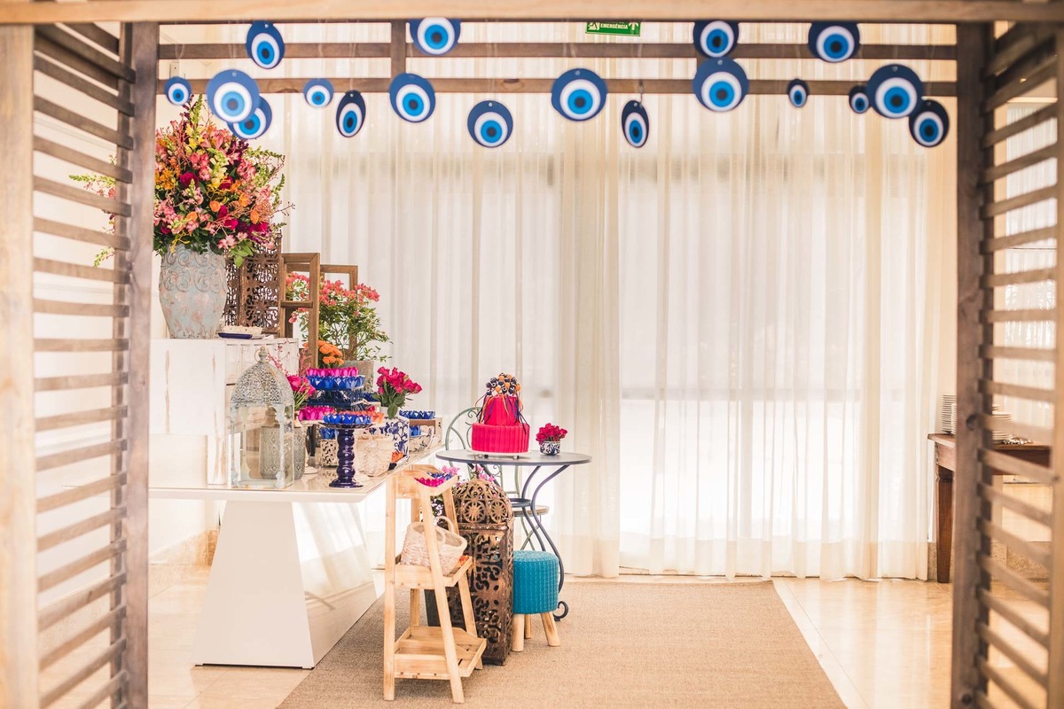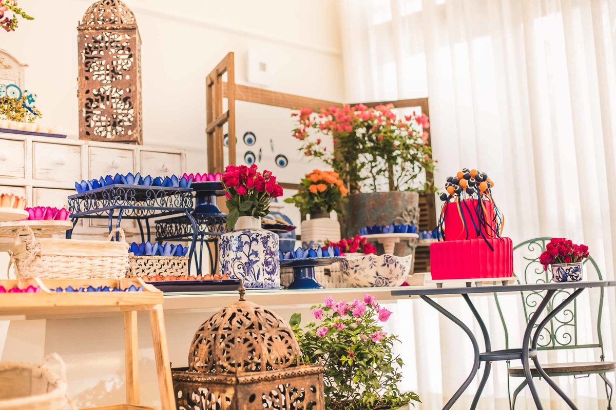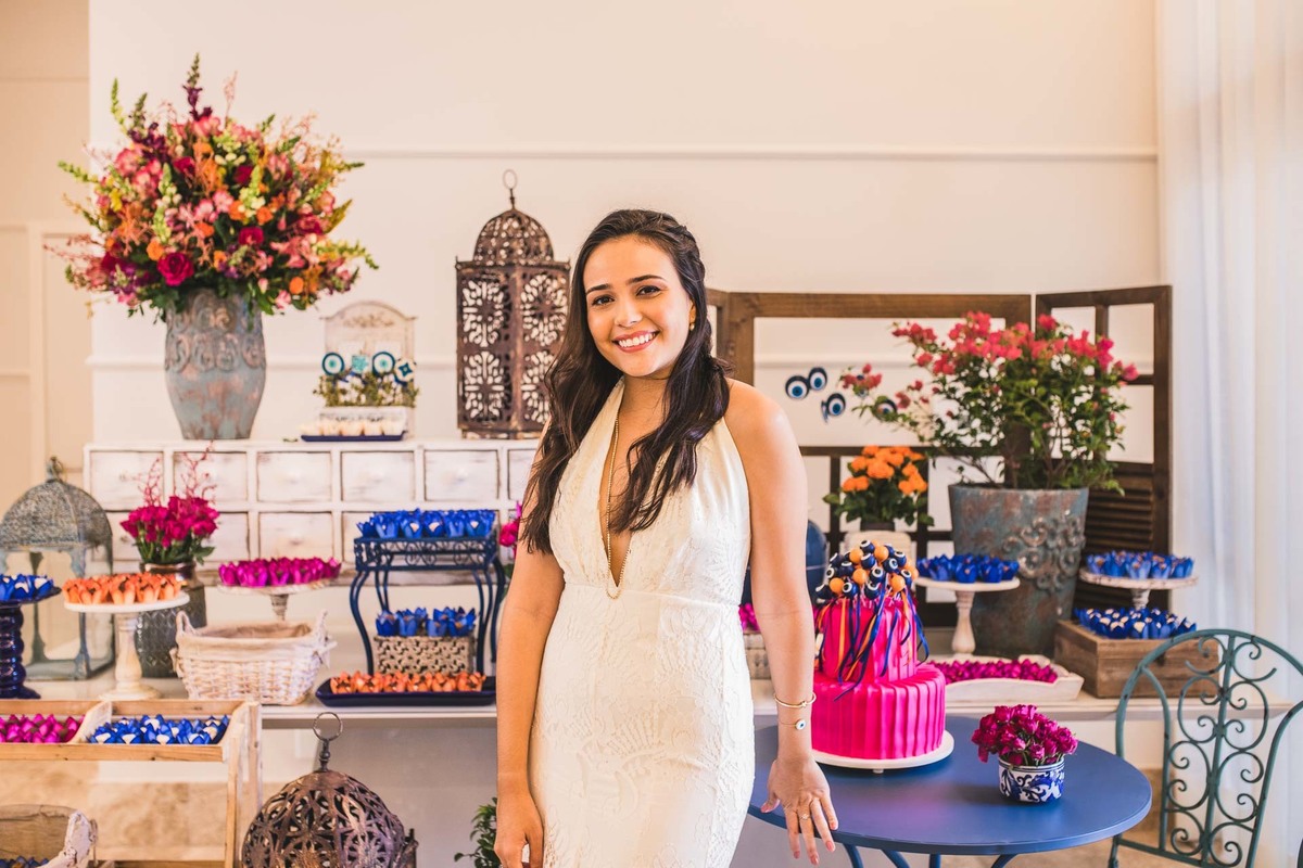 Paloma, da Mini Party Atelier, decoradora que conseguiu traduzir a Grécia cheia de cor azul, rosa e laranja com muita delicadeza e vibração ao mesmo tempo.