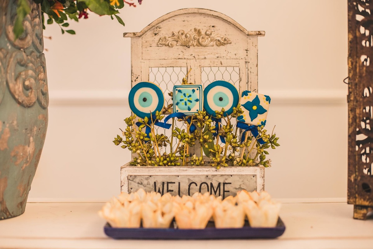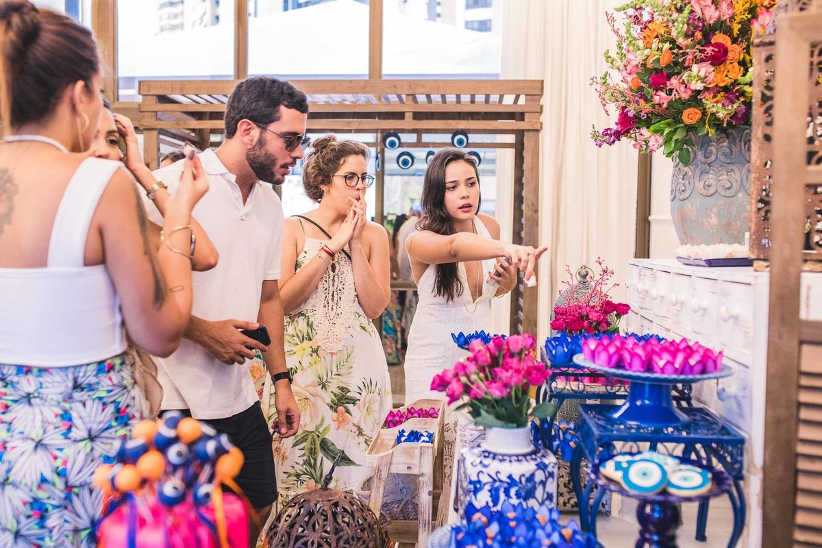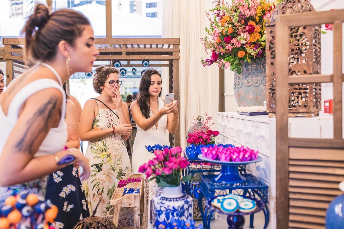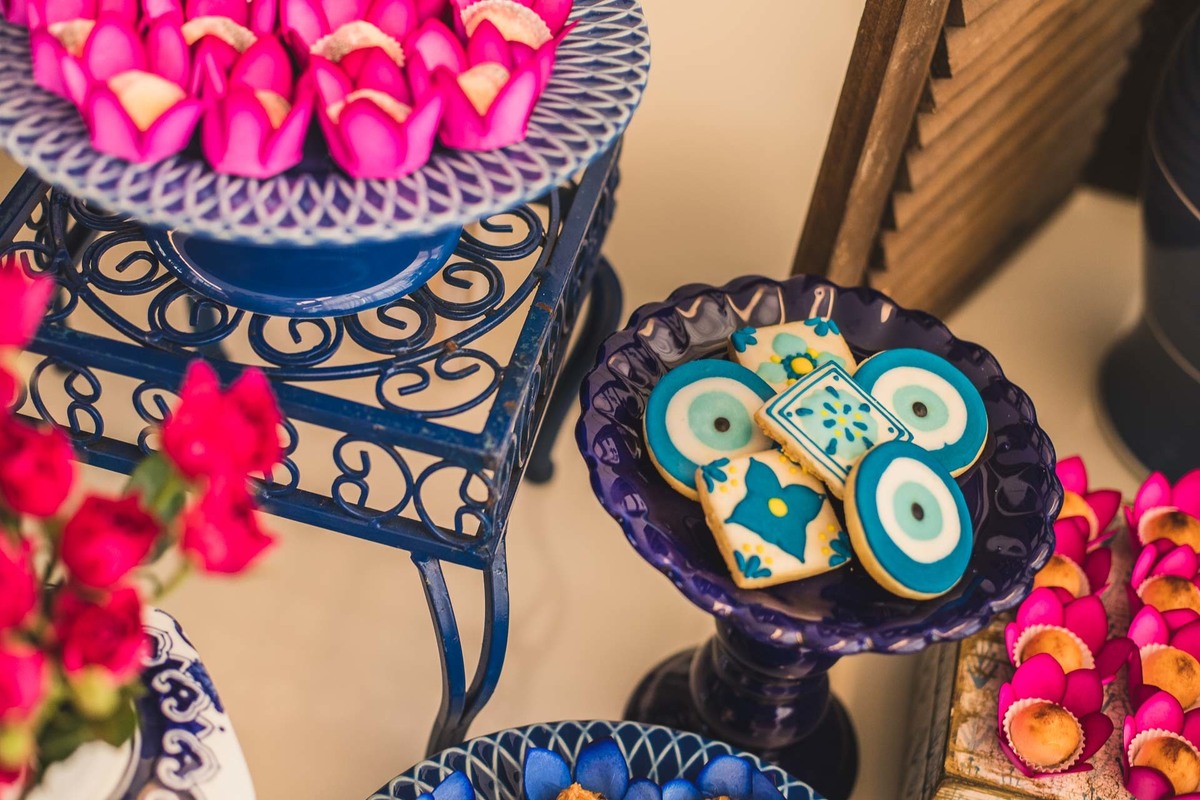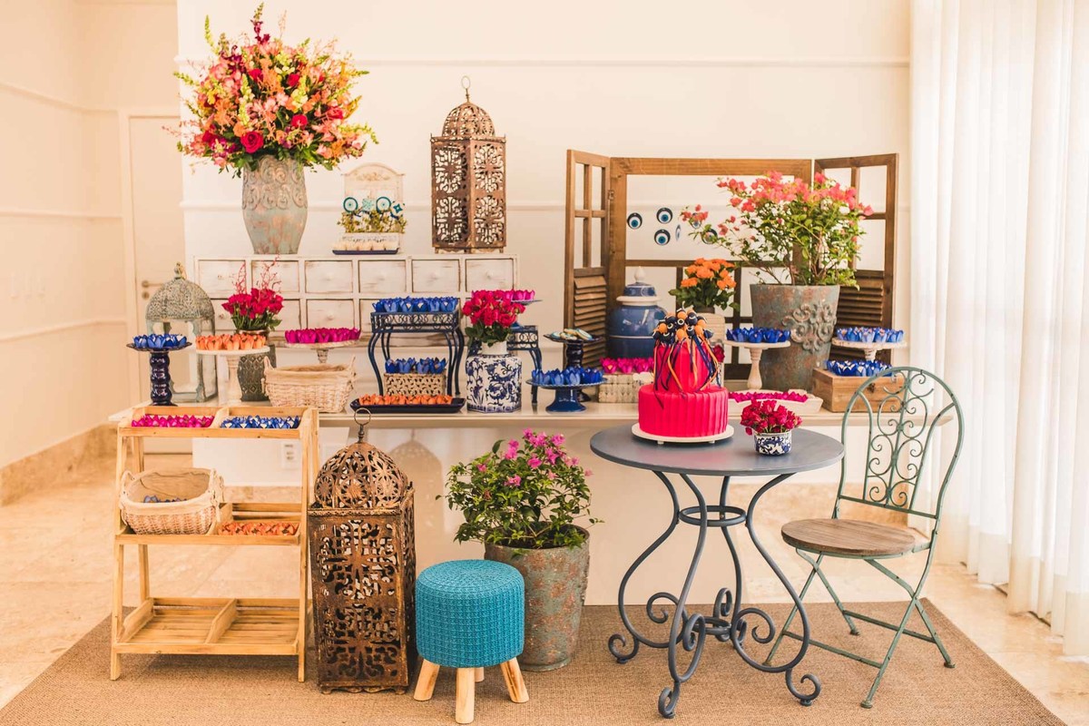 Paloma, da Mini Party Atelier, decoradora que conseguiu traduzir a Grécia cheia de cor azul, rosa e laranja com muita delicadeza e vibração ao mesmo tempo.